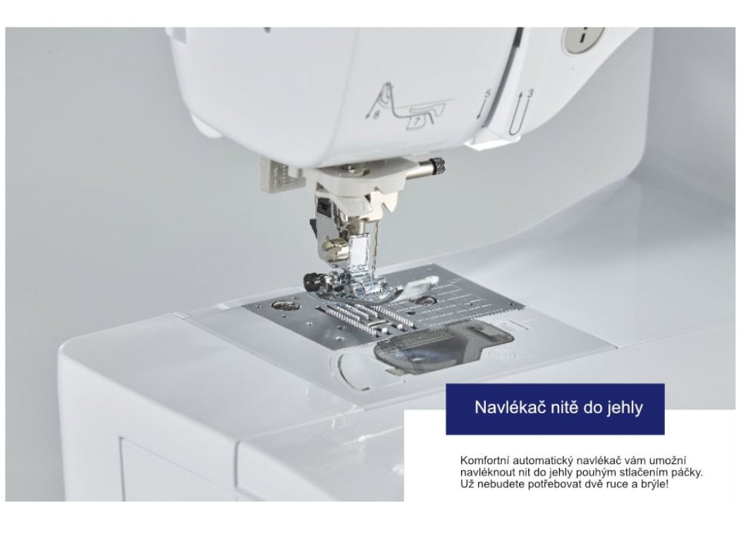 Elektronický šicí stroj s bohatou výbavou určený pro začátečníky i pokročilé. Má rychlou a jednoduchou obsluhu, je robustní, prošije vysoké vrstvy materiálu. Díky elektronice umí automaticky zapošívat. Doporučí vám, jakou patku pro daný steh zvolit. Tichý chod i přes zachování síly a průraznosti stroje. Nabízí 16 užitečných i dekorativních stehů z toho 3 druhy automatické knoflíkové dírky včetně konfekční dírky. Steh zvolíte přímo otáčením kolečkem. Maximální šířka cik-caku je až 7mm, délka stehu 4,5mm. Plně automatický navlékač nitě - na rozdíl od konkurenčních modelů navlečete nit jednou rukou i bez brýlí! Volba polohy jehly při zastavení - nahoře nebo dole v materiálu - využijete při šití rohů našívání kapes a podobně.