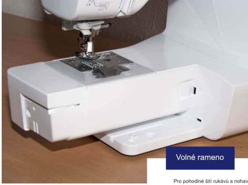 - Snadné spuštění zoubků podavače pod stehovou desku - volné quiltování