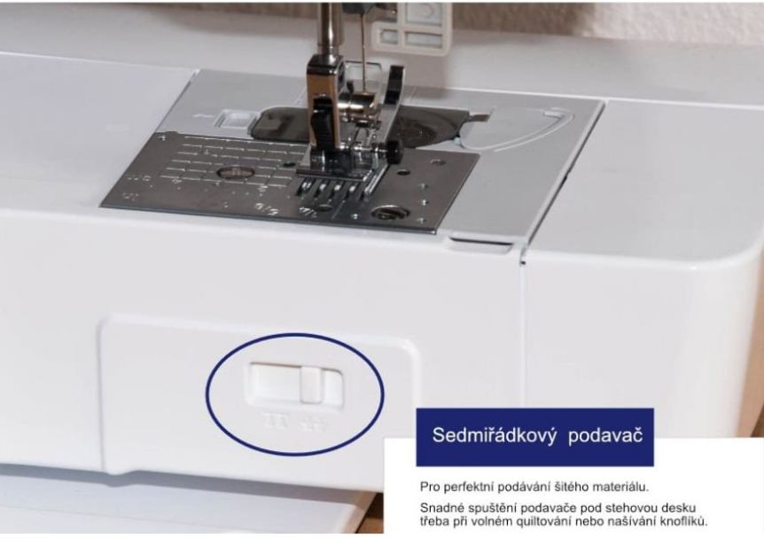 - Sedmiřádkový podavač pro perfektní podávání šitého materiálu