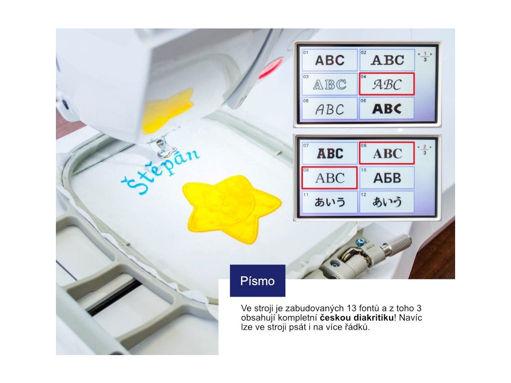 Jako první Brother má kompletní českou abecedu pro vyšívání! Nebude vám chybět Š nebo Ž!!
