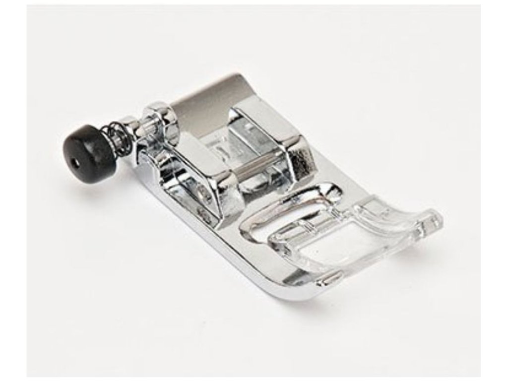 Patka univerzální s plastovou průsvitnou špičkou a fixací polohy. Patka má fixační šroub na levé straně, je vhodná pro většinu šicích strojů Brother. Šíře osičky 6mm. Cena za kus.