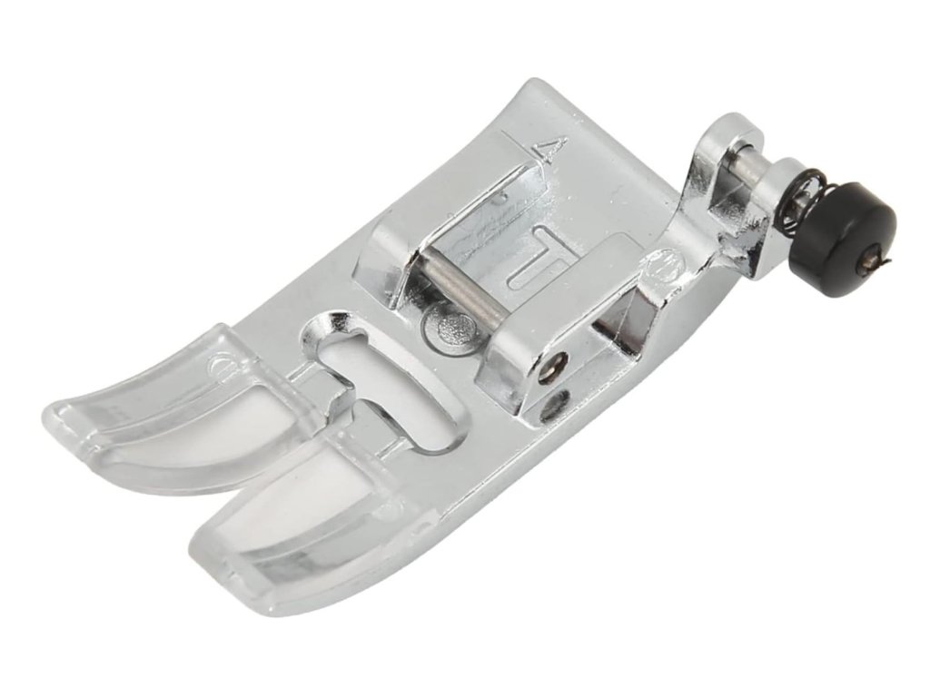 Patka univerzální s plastovou průsvitnou špičkou a aretací. Patka má šroub na fixaci na pravé straně, proto jí je možné použít do Lada šicích strojů a většiny domácích šicích strojů na trhu. Šíře osičky 6mm. Cena za kus.