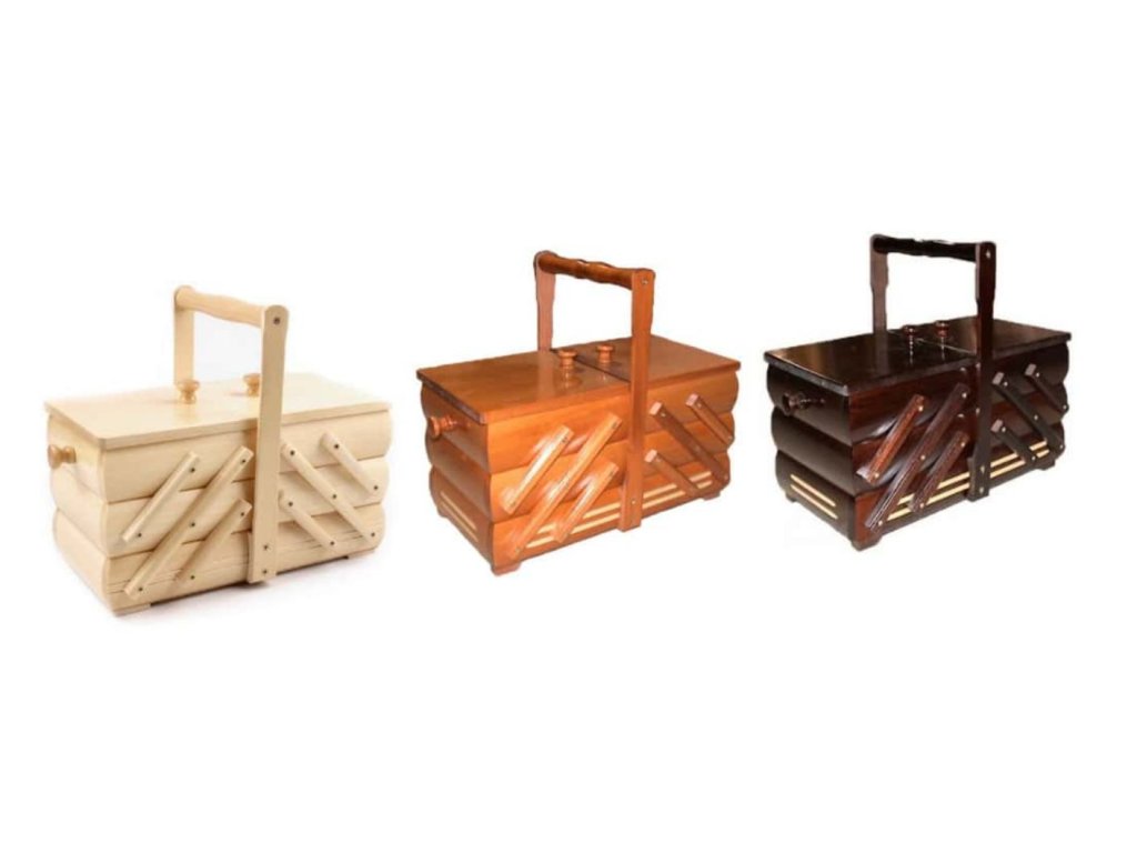 Morex Kazeta na šití dřevěná rozkládací velká 34 x 18 x 27 cm