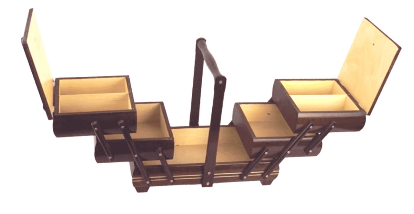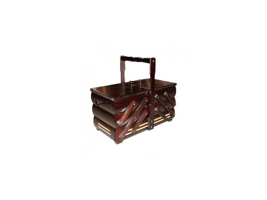 Morex Kazeta na šití dřevěná rozkládací tmavá s výbavou