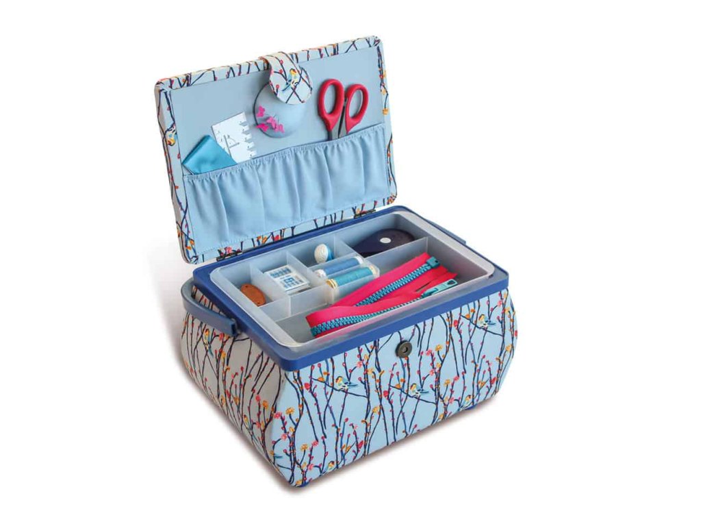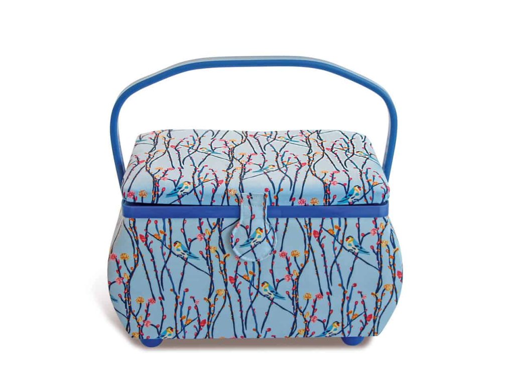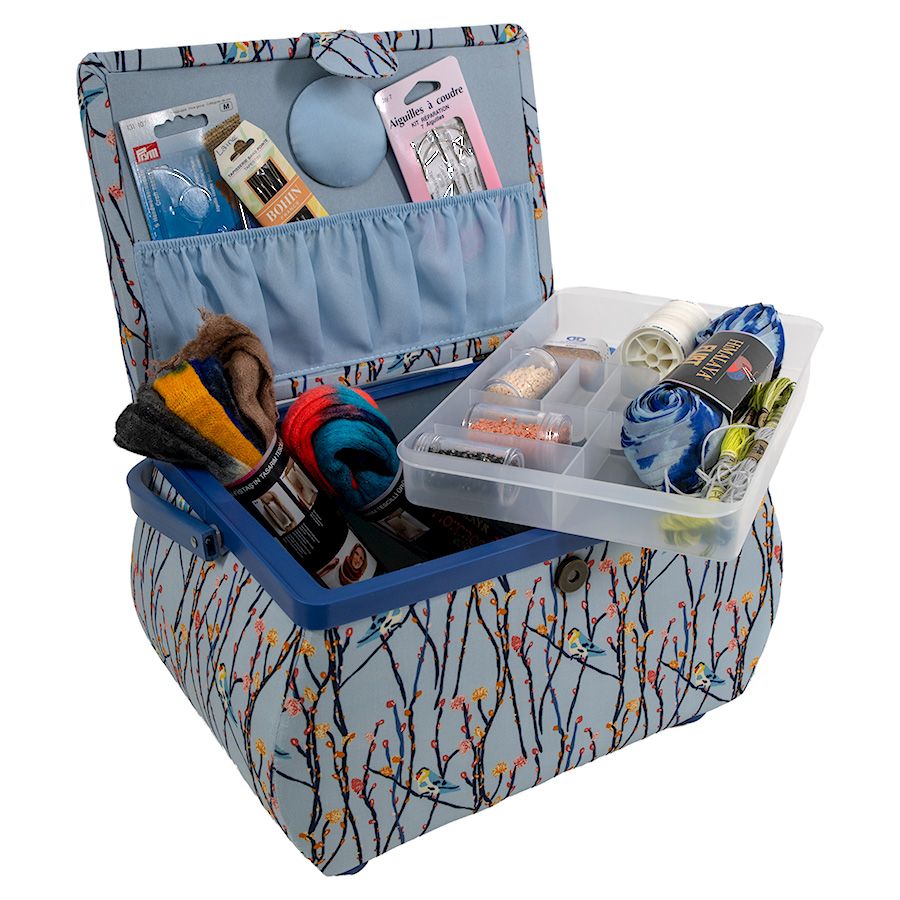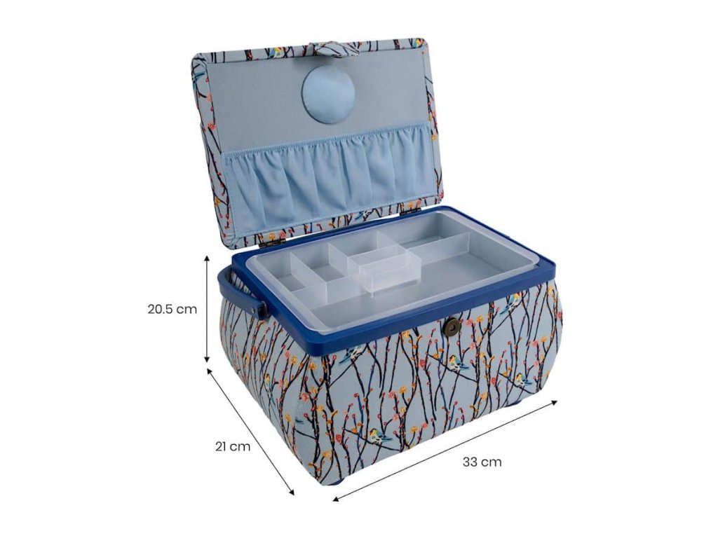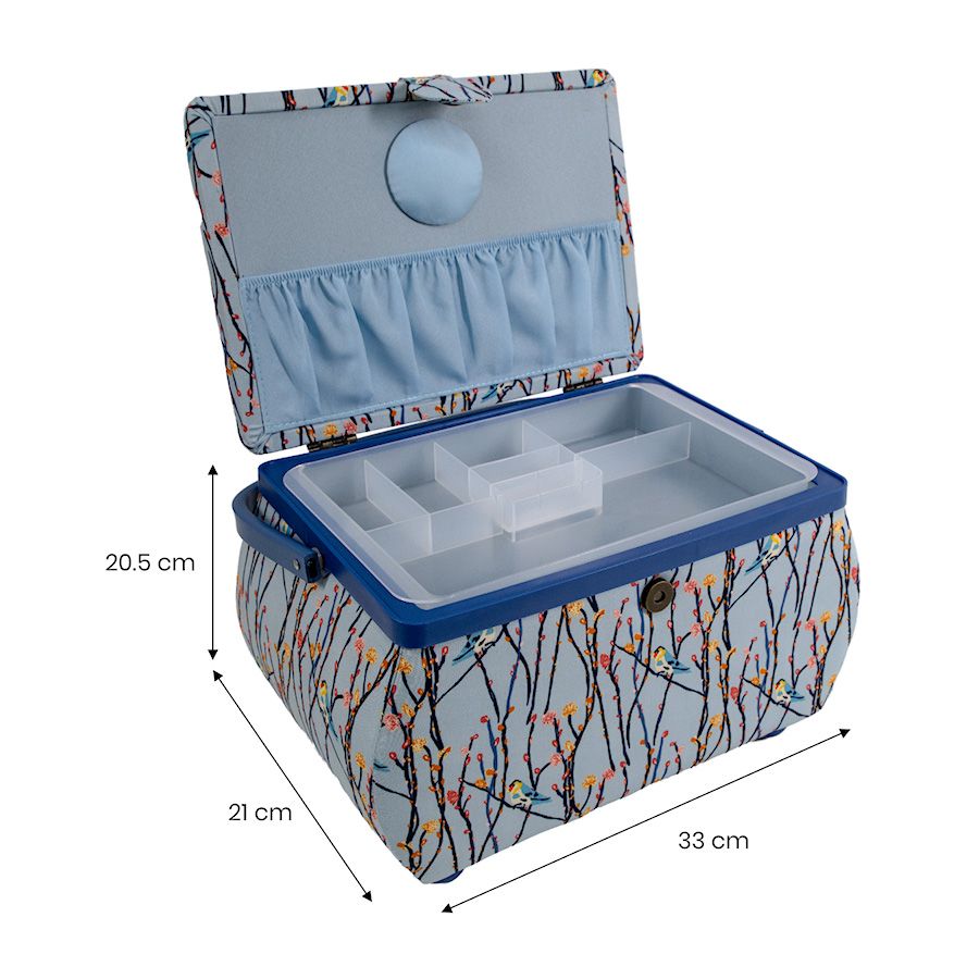 Prym Kazeta na šití s madlem Blue Birds, 32 x 20.5 x 21 cm.