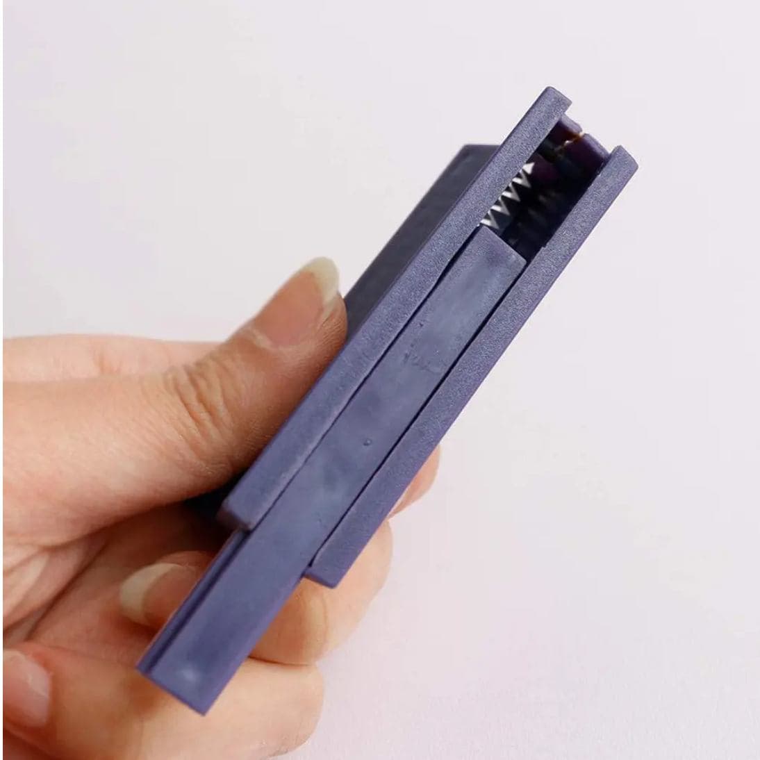 Brousek krejčovských kříd značky Prym. Slouží pro nabroušení křídové hrany. Je vybavený praktickou výsuvnou vysýpací přihrádkou na křídový prach. Takže při broušení křídy nevznikne nepořádek. Cena za kus.