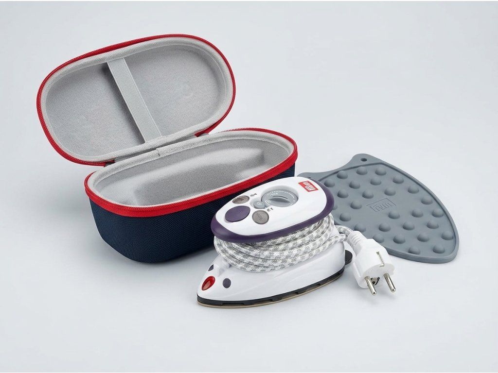 Prym Napařovací žehlička, pevný obal a silikonová podložka Sada: žehlička mini, pevné pouzdro, silikonová podložka, nálevka a pytlík