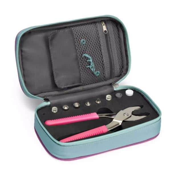 Kolekce Prym LOVE. Pouzdro na kleště Vario, různé nýtovací a děrovací nástavce a další pomůcky. Kleště a nástavce přesně zapadnou do výřezů pro ně určených a na uložení dalších pomůcek lze využít dvě uzavíratelné kapsy. Vhodné jak na cestování tak na přehledné uskladnění doma. Rozměry 22,5x13,5x5 cm. Kleště a nástavce nejsou součástí balení! Tchajwanský výrobek, cena za 1 kus.