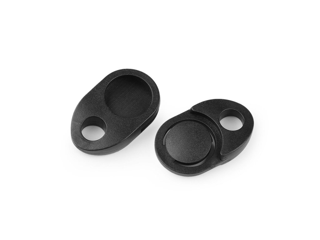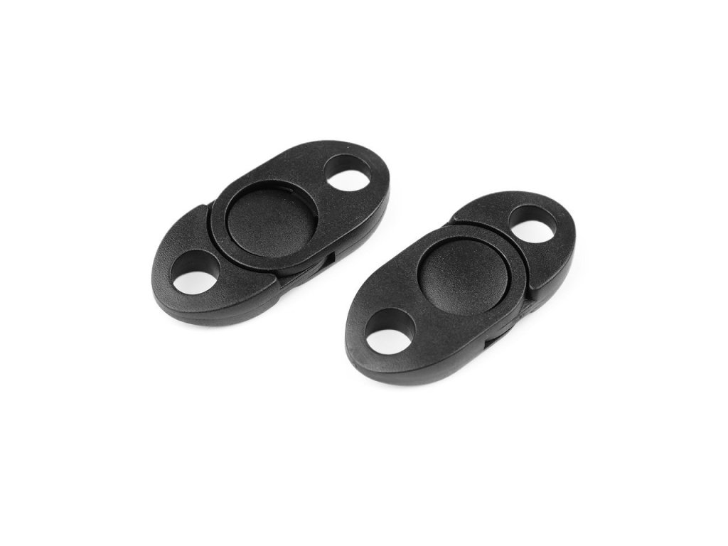 Plastová otočná spona se skládá ze dvou částí. Využijete ji k výrobě outdoorových batohů či sportovních tašek, vaků apod. Každá část spony má průvlek o průměru 8 mm, kterým můžete provléct pruženku nebo šňůru. Rozměr: 22 x 48 mm. Průvlek 8 mm. Cena za kus.
