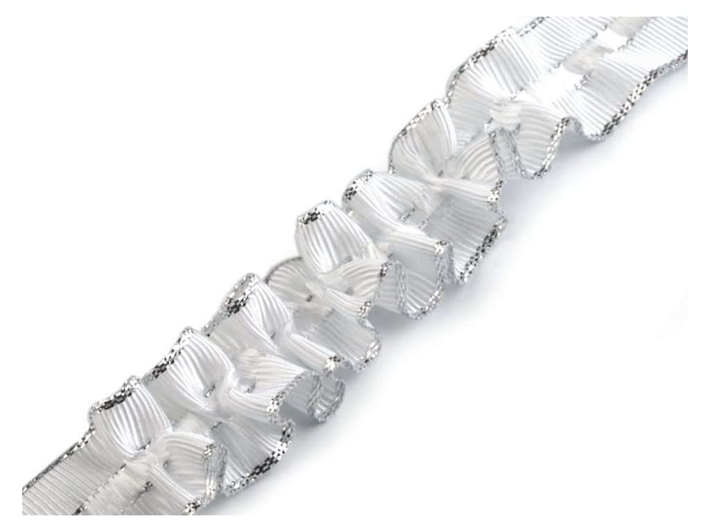 Řasicí rypsová stuha s lurexem bílá, šíře 23 mm