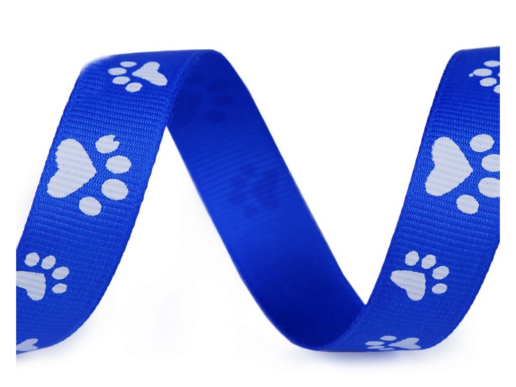 Popis: Rypsová stuha je pevná s jemným žebrováním. Stuha je barevná s jednostranným potiskem tlapek, který se neodírá. Šíře 15 mm, tloušťka 0.3 mm. Složení 100% polyester. Cena za metr.