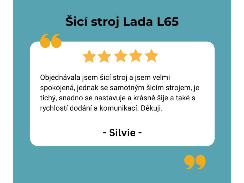 Lada L65 má zesílenou základnu a celou konstrukci, proto je spolehlivý a dlouho vydrží. Díky silnému mechanickému motoru (90 W) na něm zvládnete ušít kabelky, tašky, kapsičky se zipy a to i z koženky nebo kočárkoviny se zátěrem. Matný povrch stroje se nepoškrábe a nezůstávají na něm otisky prstů.