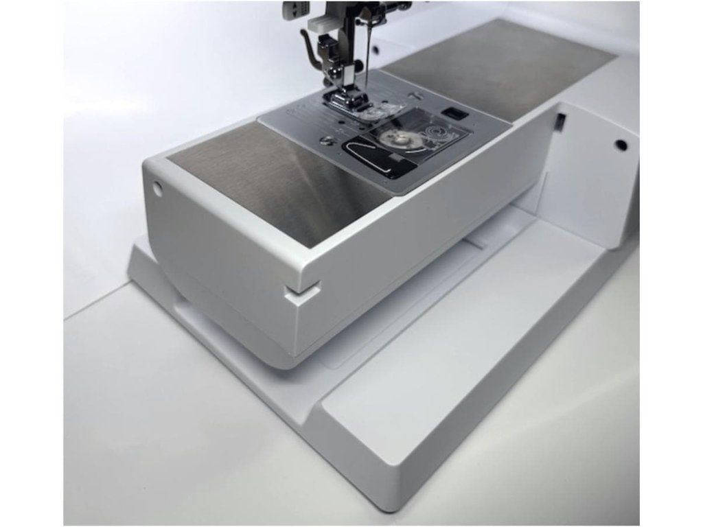 Úzké volné rameno využijete při šití uzavřených částí, například rukávů a nohavic. Horní část ramene je vyrobená z nerezové oceli.