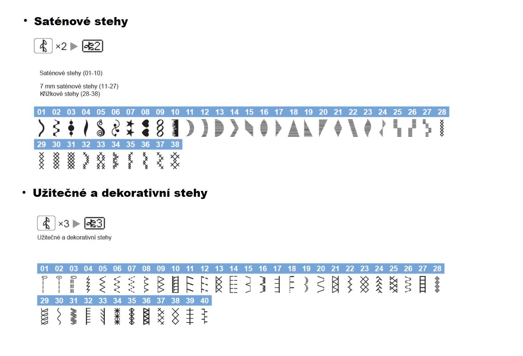 Obrovský výběr stehů, knoflíkových dírek, abecedy, číslice