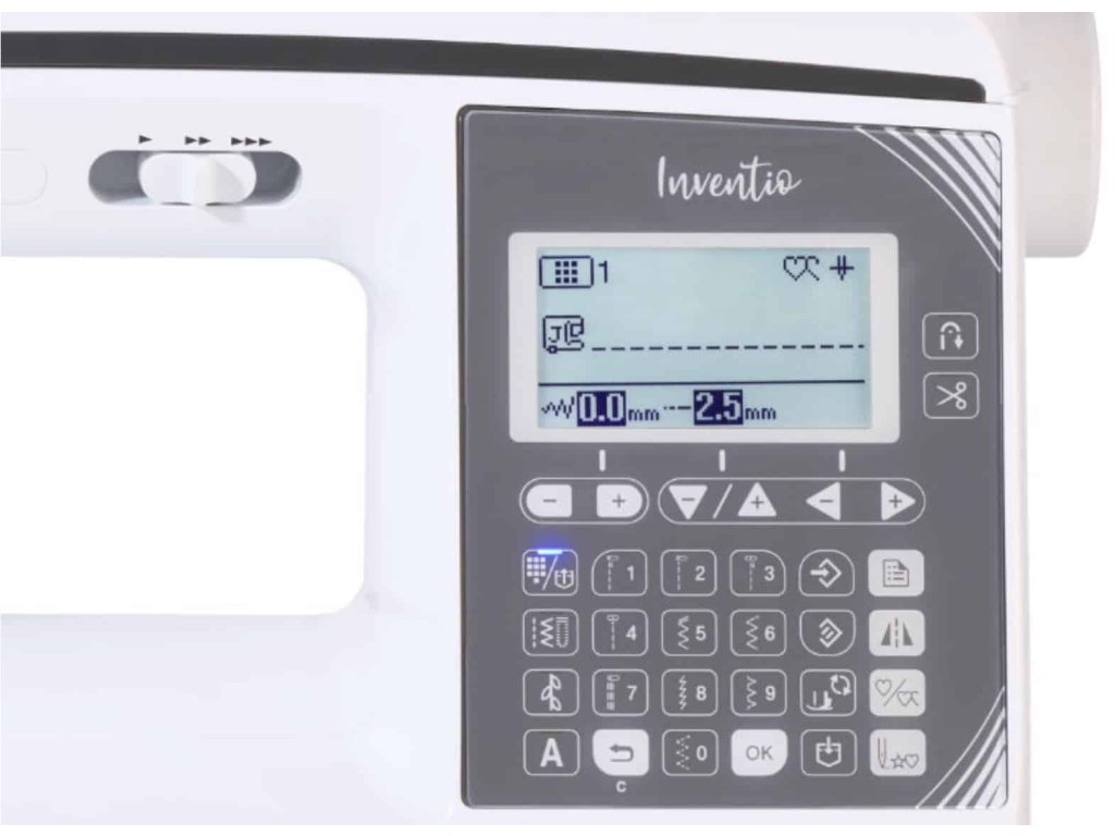 Velký displej zobrazuje přesně všechny úpravy stehů