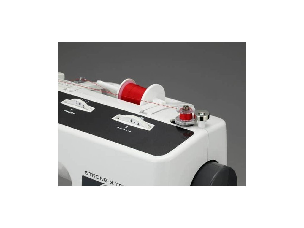 Vhodný na šití silných materiálů, více vrstev a zvládne i šití tlustou džínovou nití.