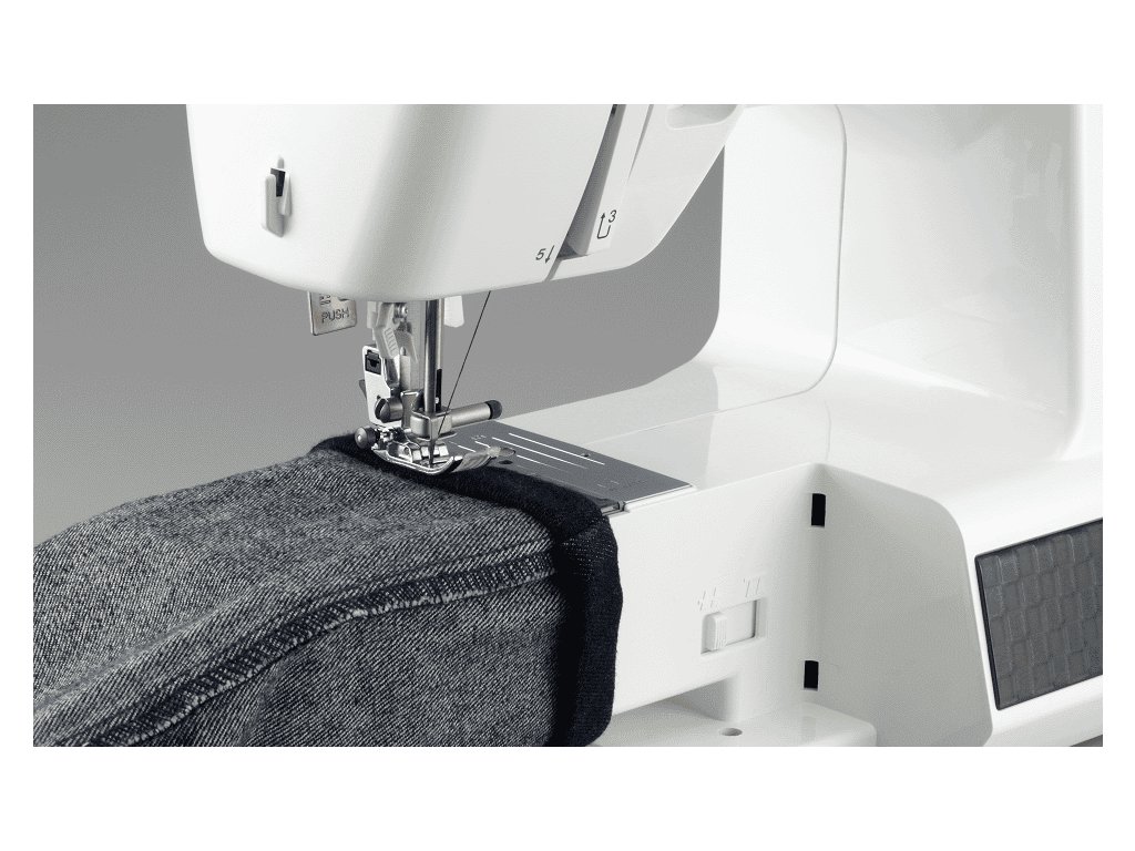 Díky robustnosti stroje, skvělému podavači a skvěle tvarovaným zoubkům dokážete prošít bez problémů i několik vrstev náročných materiálů.