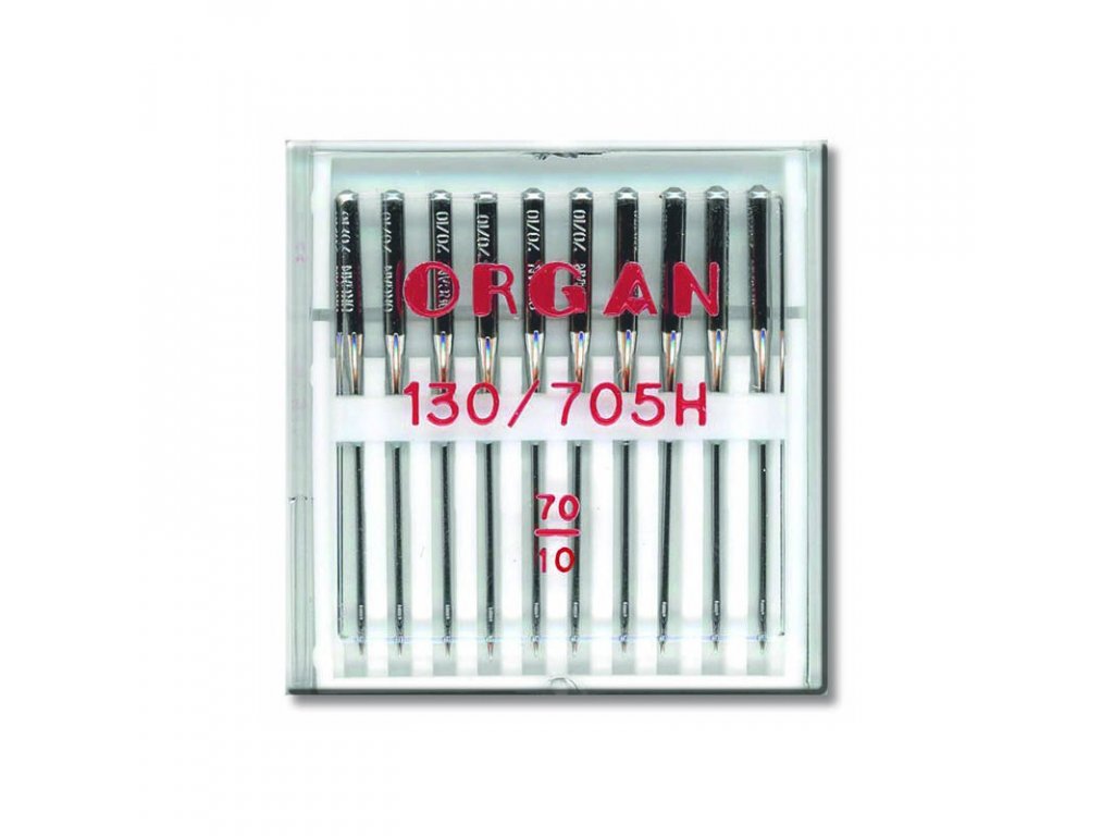 Kvalitní strojové jehly japonské značky Organ vhodné pro domácí šicí stroje (705H). Japonský kvalitní výrobek. Váš šicí stroj s nimi bude šít bez zvýšeného hluku stroje, vynechávání stehů a dalších potíží, které můžou způsobit nekvalitní jehly. Univerzální strojové jehly s ploškou na dříku. Velikost 70/9, tedy univerzální jehly vhodné pro šití tenkých a lehkých materiálů. Dřík 2,04 mm, délka po ouško 33,9 mm, špička R - nejběžnější pro všechny typy vázaných stehů, především pro tkané materiály a umělou kůži. Krabička obsahuje 10 ks jehel.