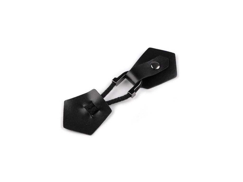 Elegantní zapínání z eko kůže je kvalitně zpracované. Rozměry: celková délka po zapnutí 14,5 cm, šířka 4,5 cm. Složení: eko kůže, bavlna, polyester, kov. Cena za kus.