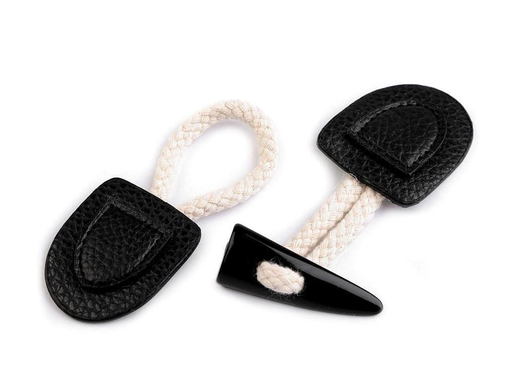 Elegantní zapínání z eko kůže s knoflíkem je kvalitně zpracované. Zapínání může být rozlepené, což není důvod k reklamaci - jedná se o polotovar, který je nutno prošít. Rozměry knoflíku: 2 x 5 cm. Celková délka po zapnutí: 17 cm. Složení: eko kůže, pryskyřice. Cena za kus.